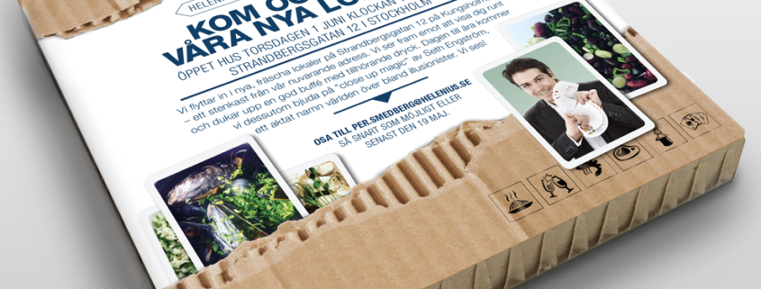 Premiär för Helenius nya kontor i Silverdal och det är dags för premiärvisning. Inbjudan gjordes på reboard för att förstärka känslan av flytt och ta plats bland övrig post.