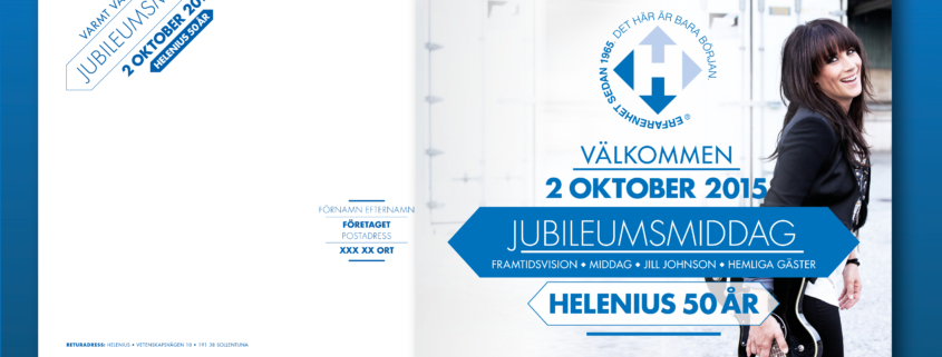 Helenius firar 50-års jubileum på Vinterviken. Kvällen huvudattraktion är Jill Johnsson som självklart också pryder omslaget till inbjudan.